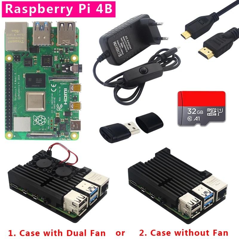 Special Offer Оригинальный Raspberry Pi 4 Модель B комплект 1 2 4GB Оперативная память + двойной вентилятор Алюминий в виде ракушки + Мощность вилка + микро кабель ... Discount 17% Today!