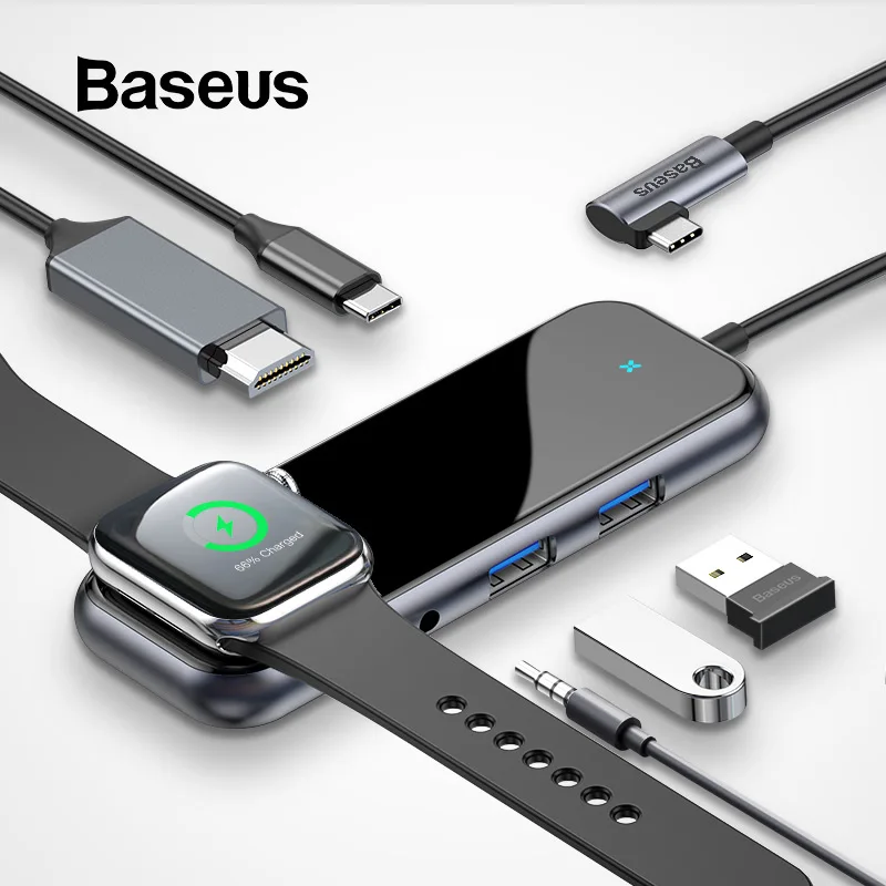 . [Скидка 20%] Купить Baseus мульти концентратор USB Type C до 3,0 HDMI RJ45 usb хаб для MacBook Pro USB C концентратор для iWatch беспроводной зарядный адаптер USB разветвитель Цена Дешево.