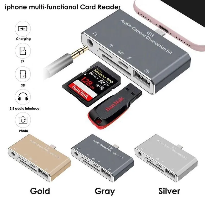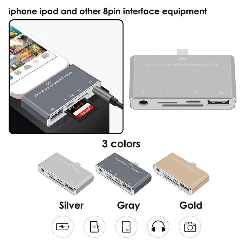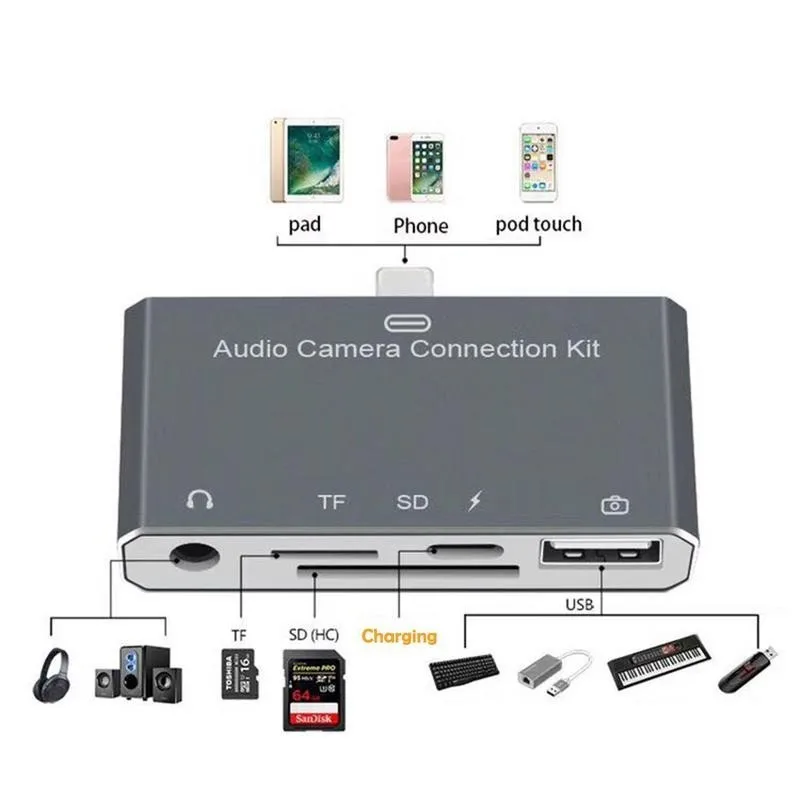 Special Offer Usb хаб с TF sd картой мобильный телефон многофункциональная камера карта аудио Aux OTG Зарядка для Lightning Iphone 6 7 8 10 старый Ipad Discount 23% Today!