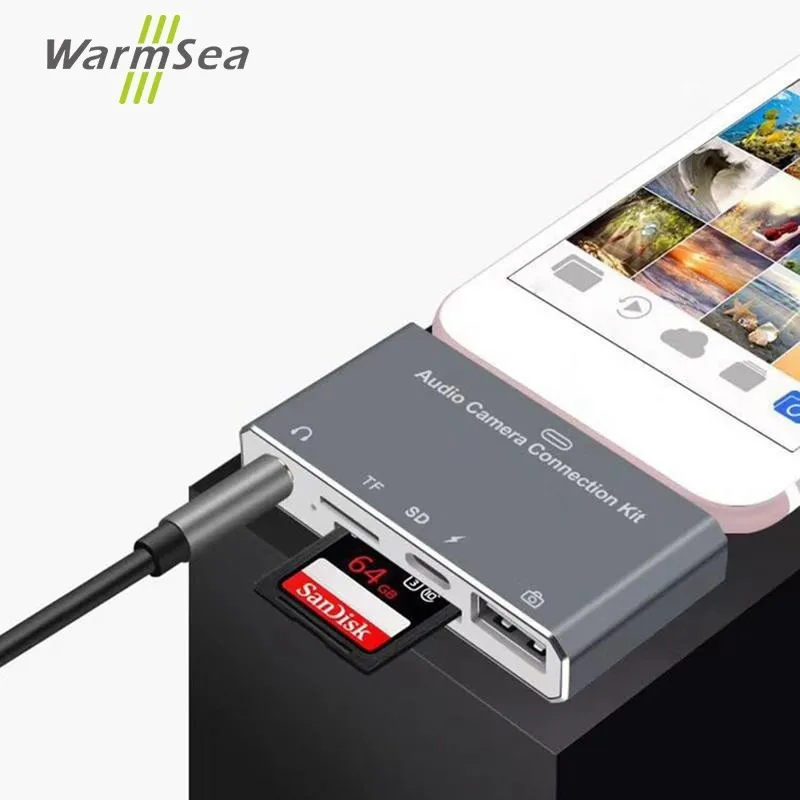 . [Скидка 23%] Купить Usb хаб с TF sd картой мобильный телефон многофункциональная камера карта аудио Aux OTG Зарядка для Lightning Iphone 6 7 8 10 старый Ipad Продажа Дешево.